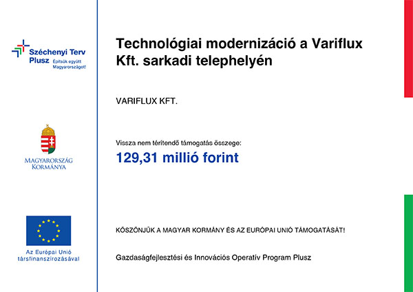 A fejlesztés tárgya, célja: Technológiai modernizáció a Variflux Kft. sarkadi telephelyén